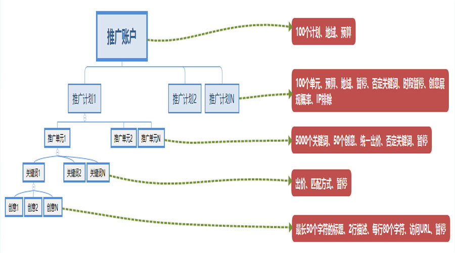 清晰:账户结构应该按照您的网站内容和目标市场,分为不同的层级,每个层级都有明确的目的和功能。