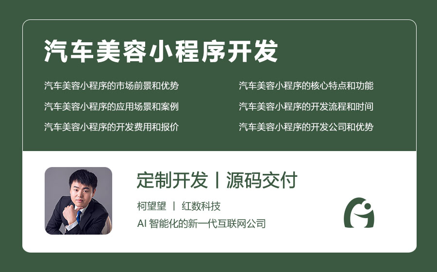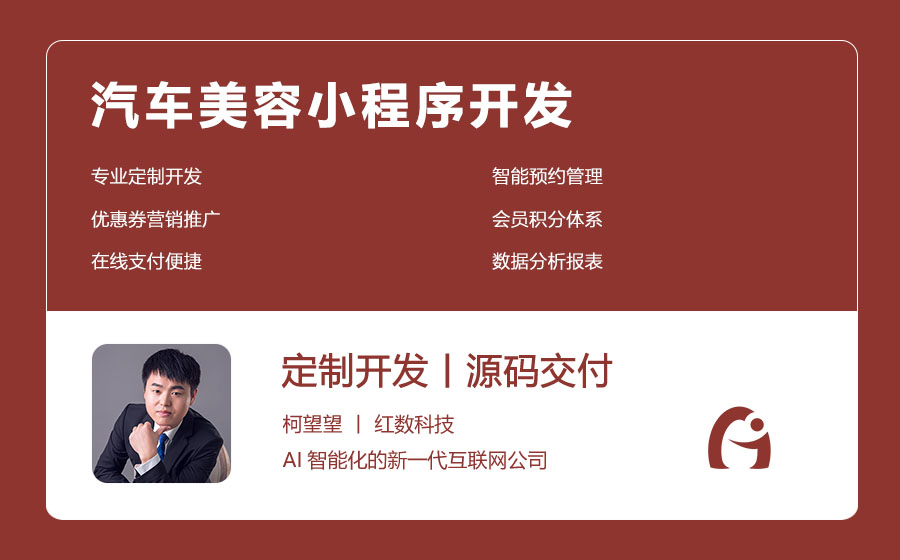 汽车美容小程序开发的开发公司是深圳市红数科技信息有限公司,简称红数科技,是一家专业的小程序开发公司,拥有10年的小程序开发经验和数百个成功的小程序案例,为各行各业的B端客户提供高质量的小程序定制开发服务。