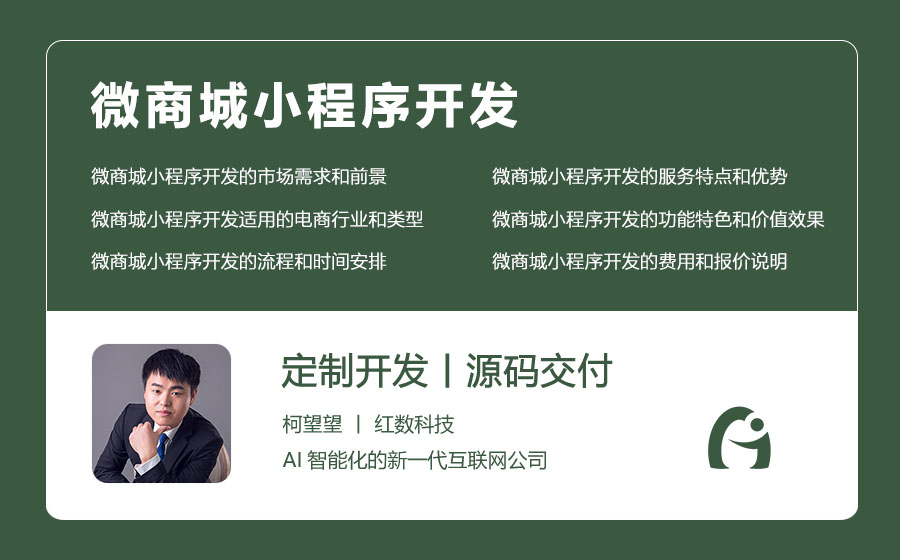 微商城小程序开发是一款专业的微信小程序商城定制开发服务,由深圳市红数科技信息有限公司(以下简称红数科技)提供。红数科技是一家专注于小程序开发的科技公司,成立于2020年,拥有一支由资深的工程师、设计师、运营师、市场师等组成的专业团队,为您提供一站式的小程序开发服务,从需求分析、方案设计、功能开发、测试上线、运营维护等全程负责,让您无忧无虑。